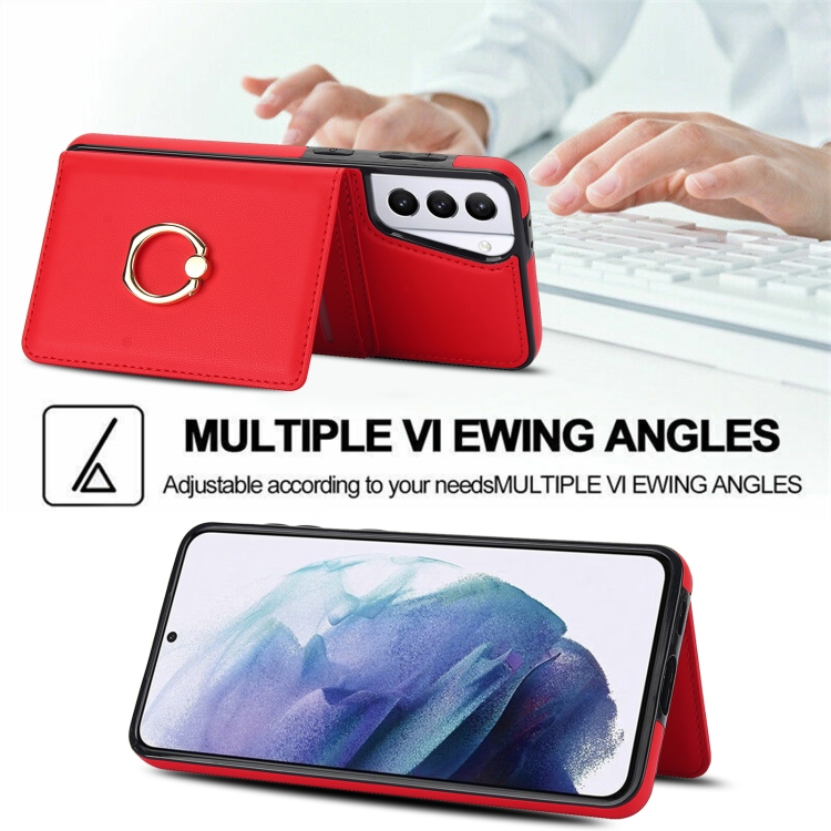 Estuche para Teléfono Samsung Galaxy S21 5G Rfid Tarjeta Antirrobo con Soporte para Anillo (Rojo)