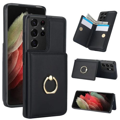 Estuche para teléfono Samsung Galaxy S21 Ultra 5G con RFID antirrobo y soporte para anillo (Negro)