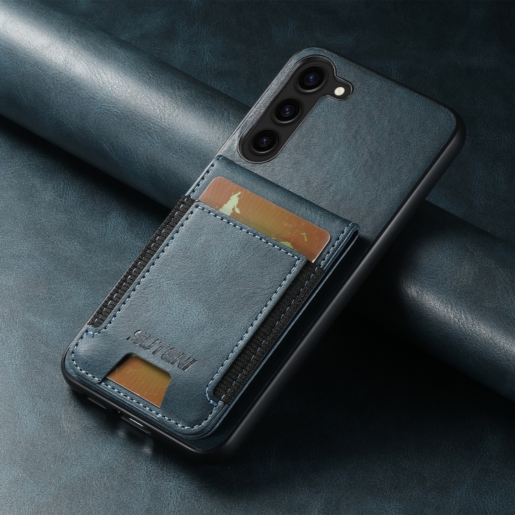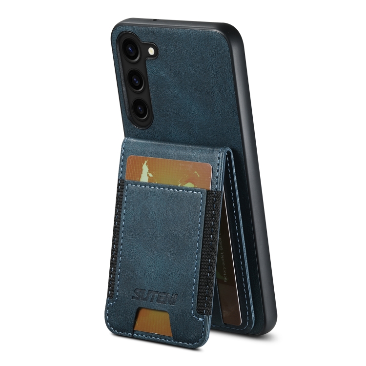 Funda para Teléfono Suteni H03 para Samsung Galaxy S22 + 5G con Soporte y Billetera de Cuero con Cera de Aceite (Azul)
