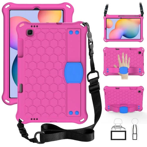 Funda para Samsung Galaxy Tab S6 Lite P610 Honeycomb Eva + PC Shock a Prueba de Golpes con Correa (Rosado + Azul)