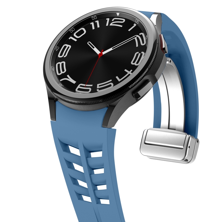 Correa de Silicona para Samsung Galaxy Watch 5 Pro Golf Edition Richard con Hebilla Plateada Plegable Magnética (Azul)