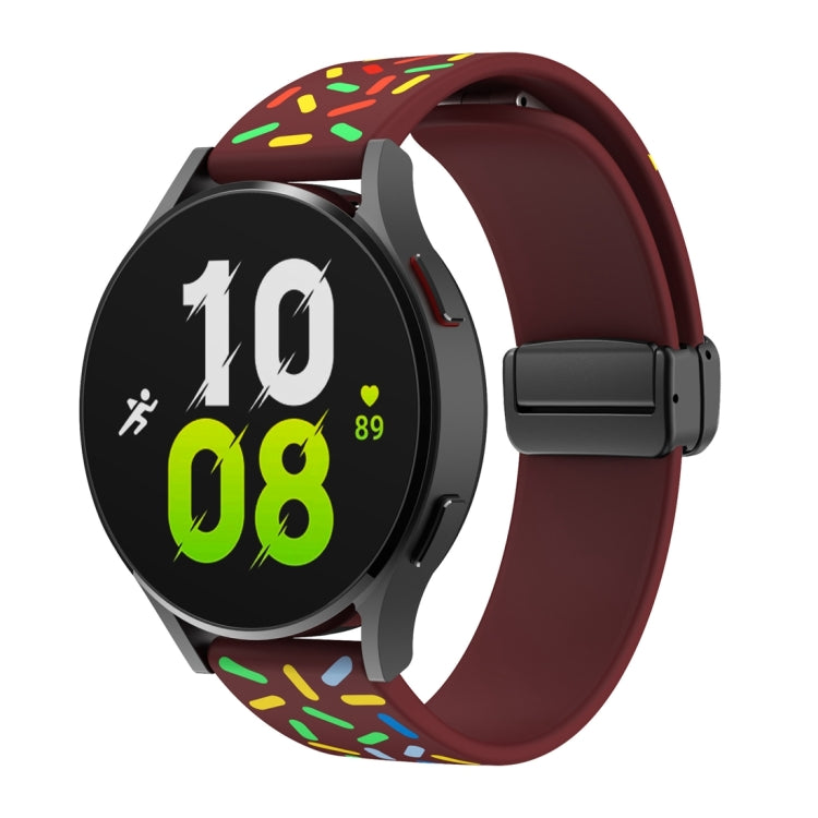 Banda de Silicona para Samsung Galaxy Watch 6/6 con Hebilla Negra Magnética y Puntos Arco Iris (Rojo Vino)