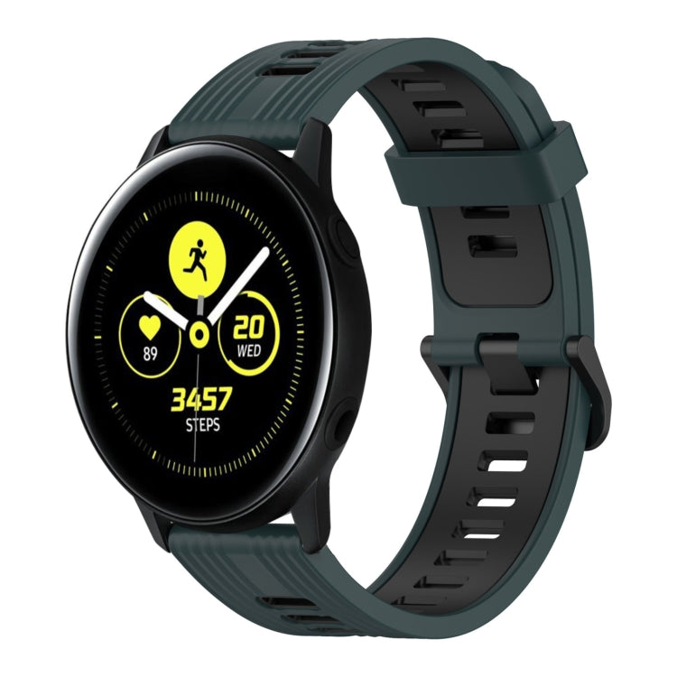 Banda de Reloj de Silicona para Samsung Galaxy Watch Active 40mm 20mm Patrón Vertical (Verde Oliva + Negro)