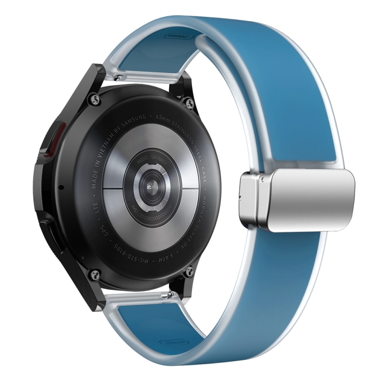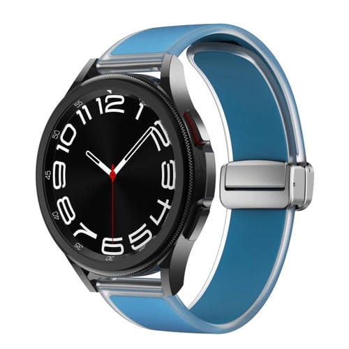 Correa de Silicona para Samsung Galaxy Watch6/5/4 con Hebilla Plateada Magnética Translúcida (Azul)