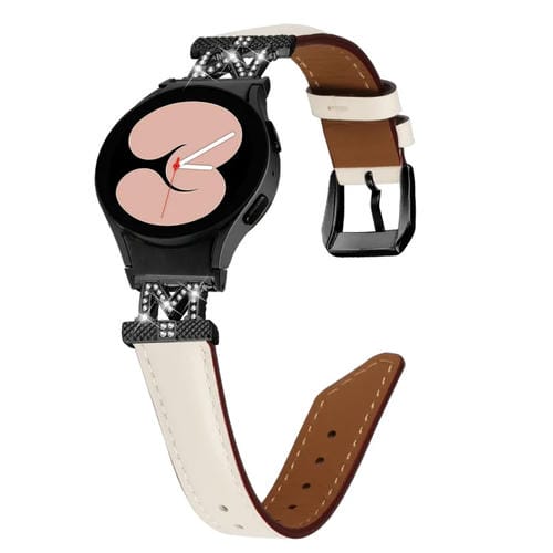 Correa de Cuero para Samsung Galaxy Watch6/6 Classic M Letra M Sarga En Forma de D (Albaricoque Negro)