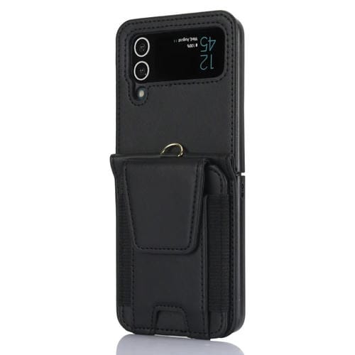 Estuche plegable Samsung Galaxy Z Flip3 con ranuras para tarjetas y cordón largo (Negro)