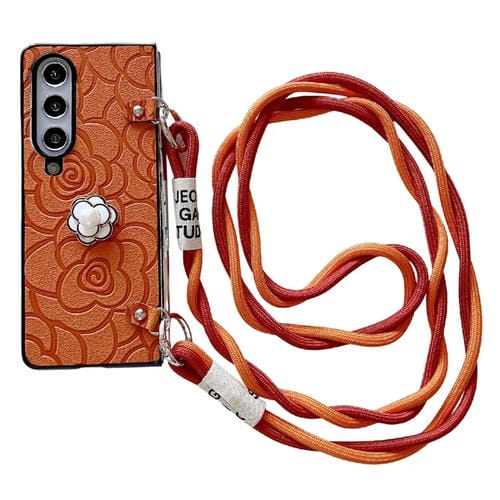 Funda Protectora Samsung Galaxy Z Fold4 5G Impression Camellia Pattern con Cordón Largo (Naranja)