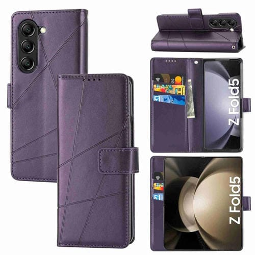 Funda para Teléfono Samsung Galaxy Z Fold5 PU con Línea en Relieve y Textura de Cuero Genuino (Púrpura)