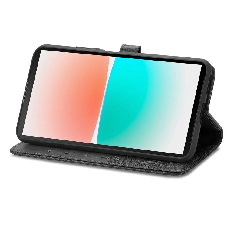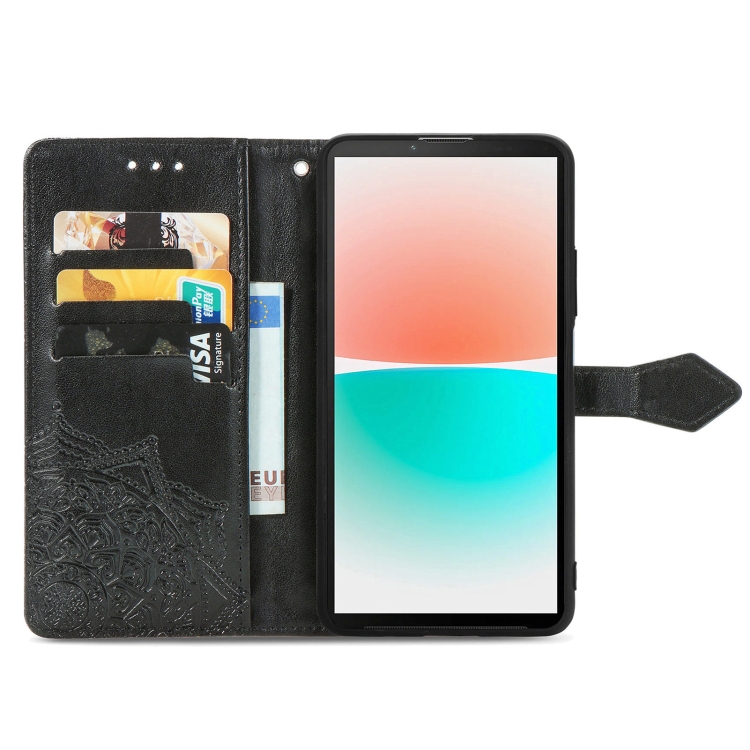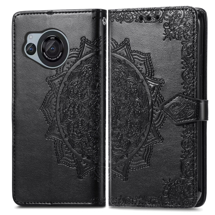 Funda de Cuero para Sharp Aquos R8 Mandala Flower con Relieve (Negro)