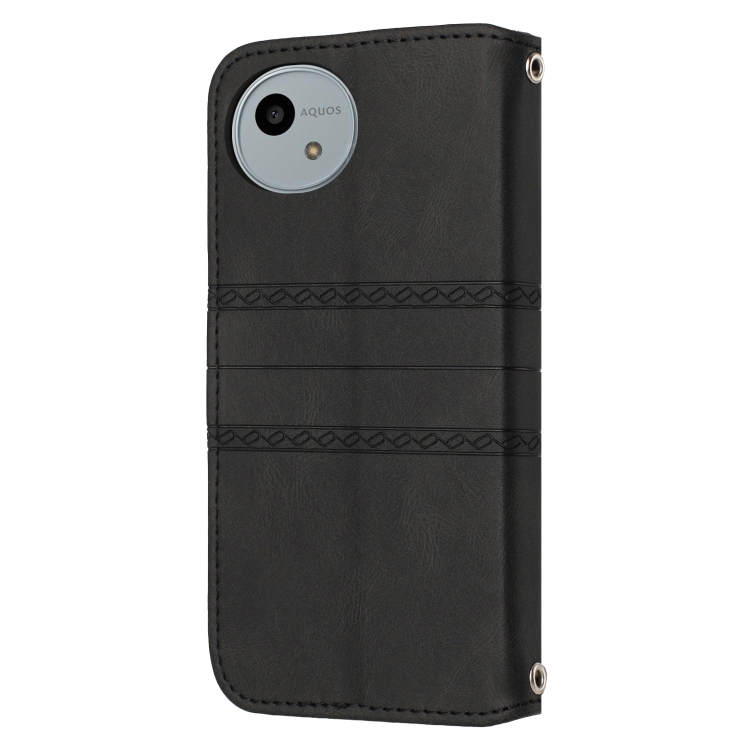 Funda de Cuero para Sharp Aquos Wish 4 con Sensación de Piel y Rayas en Relieve (Negro)