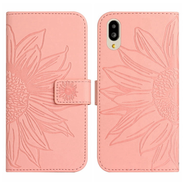 Funda de Cuero Flip para Sharp Simple Sumaho 6 con Cordón y Diseño Sun Flower (Rosa)