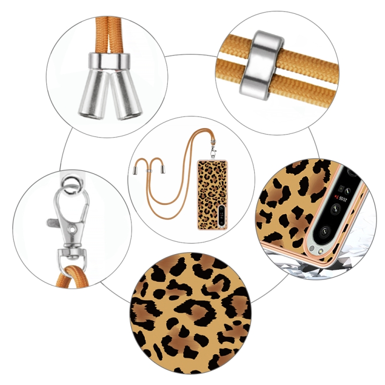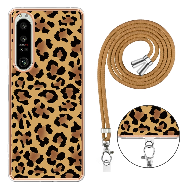 Estuche para Sony Xperia 1 IV IMD Doble Cara con Galvanoplastia y Cordón (Leopardo)