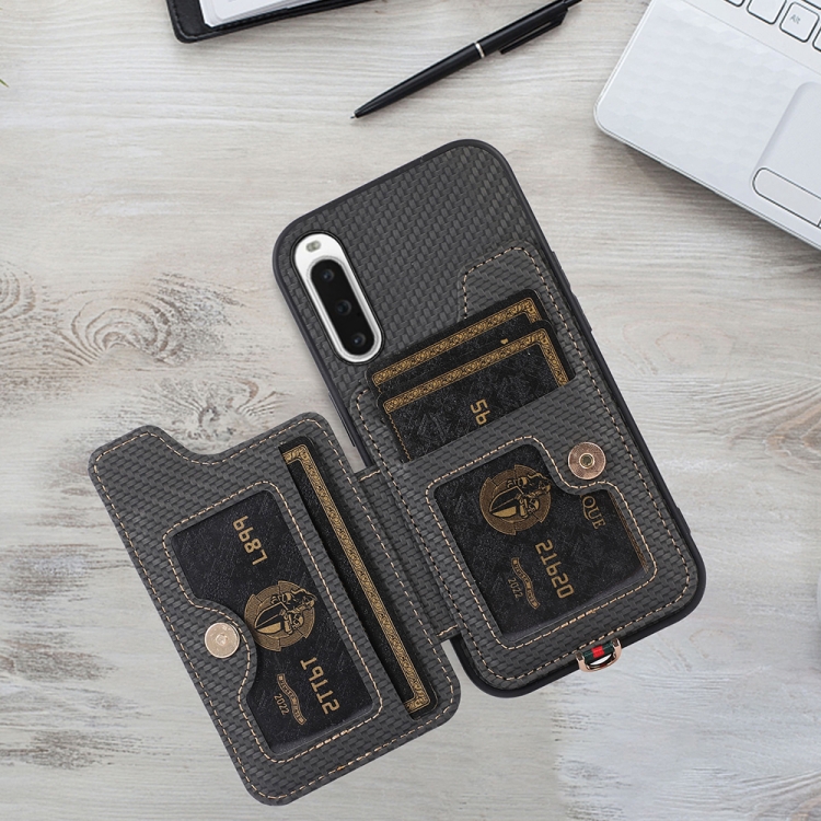 Funda para Sony Xperia 10 V Abeel con Tarjetero RFID Fibra de Carbono (Negro)