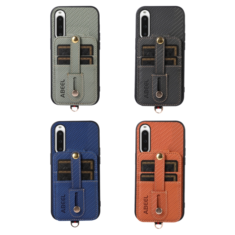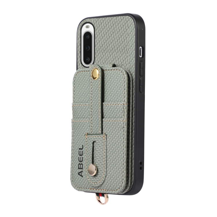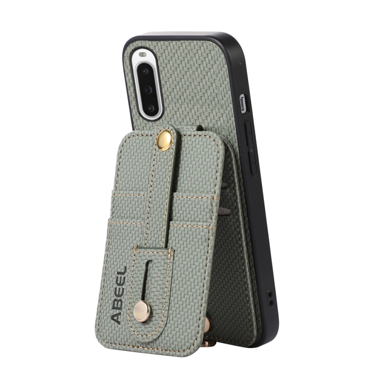 Funda para Sony Xperia 10 V Abeel con Tarjetero RFID de Fibra de Carbono (Verde)