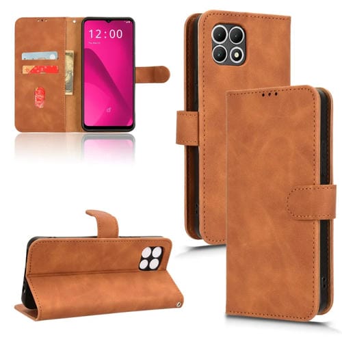 Funda de Cuero con Tapa Magnética para T-Mobile Revvl 7 5G (Marrón)