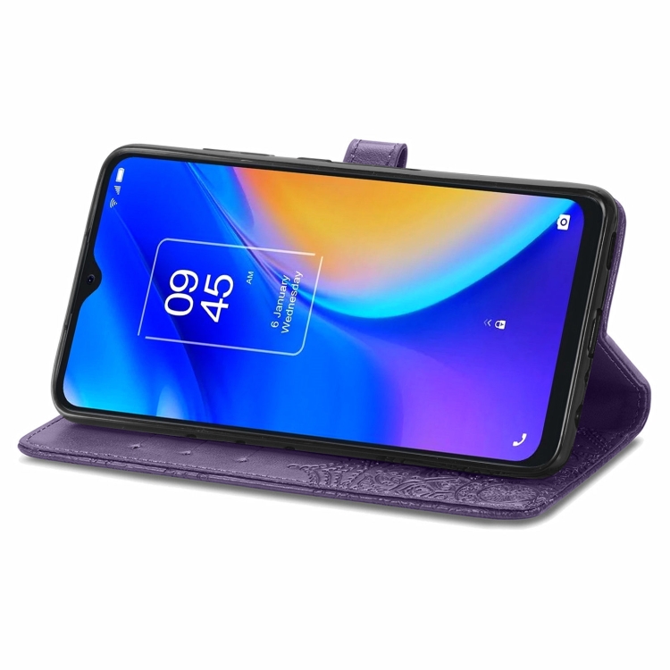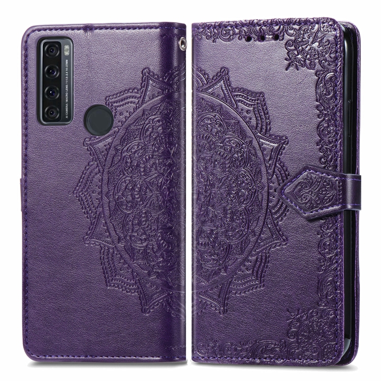 Funda de Cuero Horizontal Flip para TCL 20 Se Mandala Flower con Soporte, Ranura para Tarjeta, Billetera y Cordón (Púrpura)