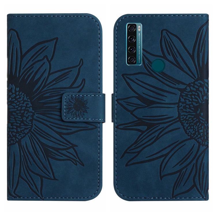 Funda Flip de Cuero para TCL 20 Se Skin Feel con Cordón y Patrón Sun Flower (Azul Tinta)