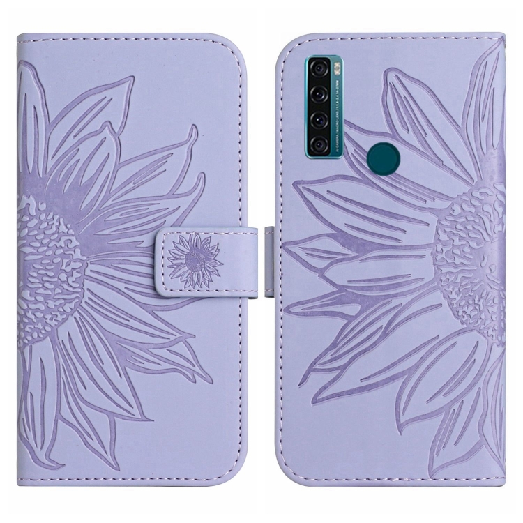 Funda Flip de Cuero para TCL 20 Se Skin Feel con Cordón y Patrón Sun Flower (Púrpura)