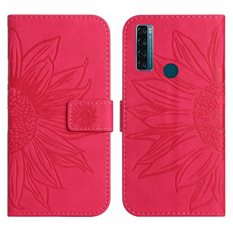 Funda Flip de Cuero para TCL 20 Se Skin Feel con Cordón y Diseño Sun Flower (Rose Red)