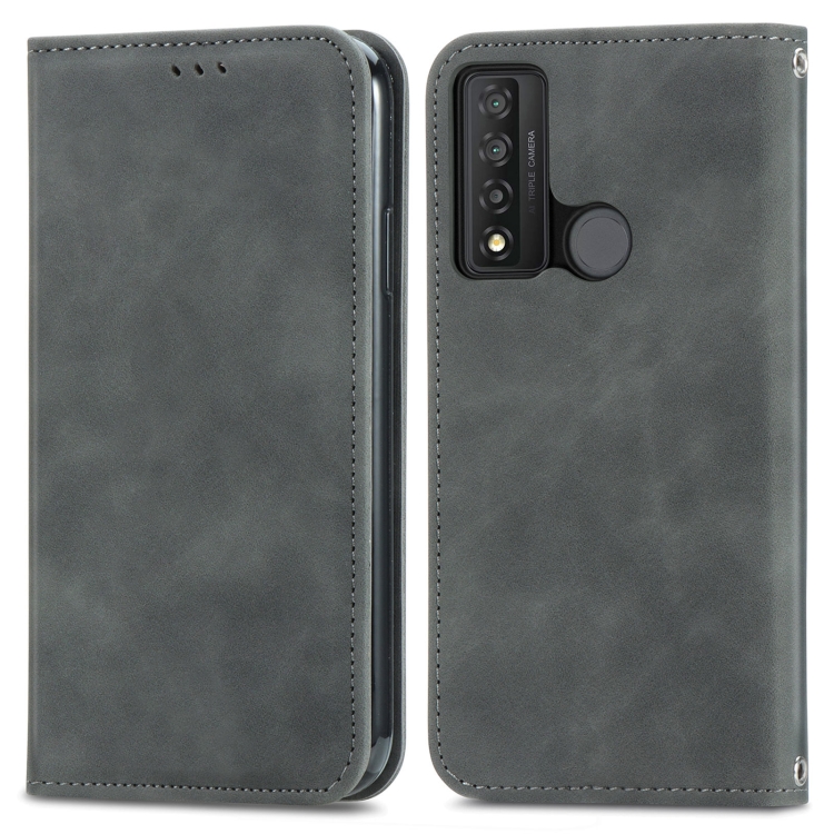 Funda Flip Horizontal Cuero para TCL 20 Xe Retro Piel Siente Caja Magnética (Gray)
