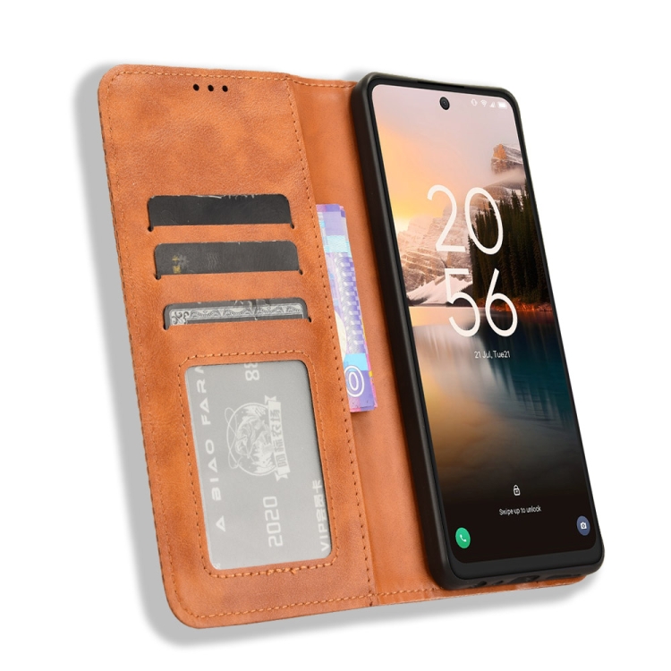 Funda de Cuero para TCL 40 Nxtpaper 4G con Textura Retro y Hebilla Magnética (Marrón)