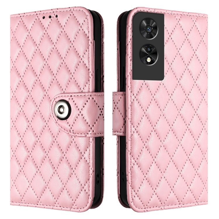 Funda para TCL 505 de Cuero con Tapa, Textura Romboidal y Cordón (Rosa)