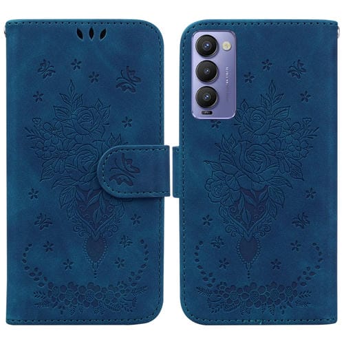 Funda para Tecno Camon 18P Butterfly Rose Foothip en Relieve de Cuero (Azul)