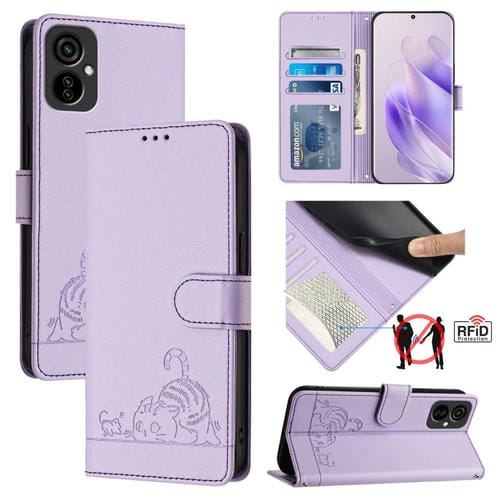 Funda para Tecno Camon 19 Neo Cuero RFID con Patrón en Relieve y Cordón (Púrpura)