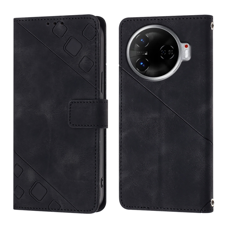 Funda de Cuero para Tecno Camon 30 Pro 5G Skin Feel en Relieve (Negro)