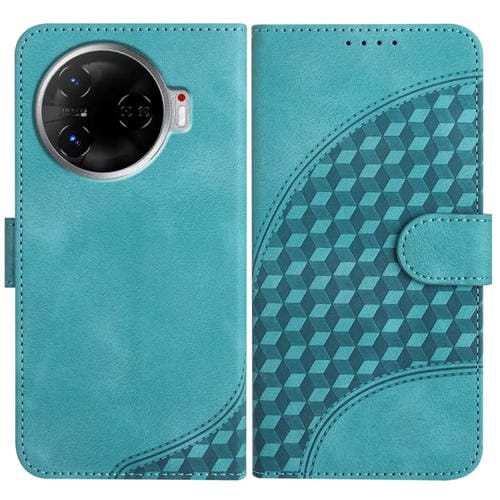 Funda de Cuero para Tecno Camon 30 Pro Yx0060 con Relieve y Cabeza de Elefante con Cordón (Azul Claro)