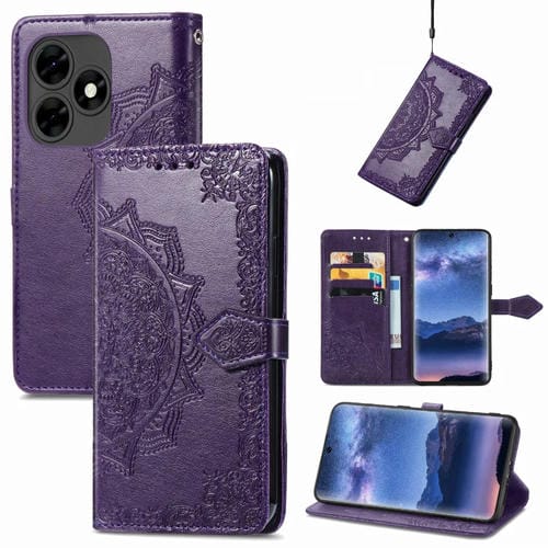 Funda para Tecno Itel S23 de Cuero con Relieve Flor de Mandala (Púrpura)