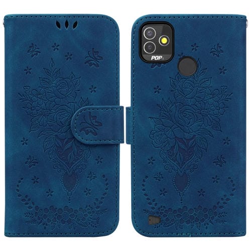 Funda para Tecno Pop 5P Butterfly Rose Foothip en Relieve de Cuero (Azul)