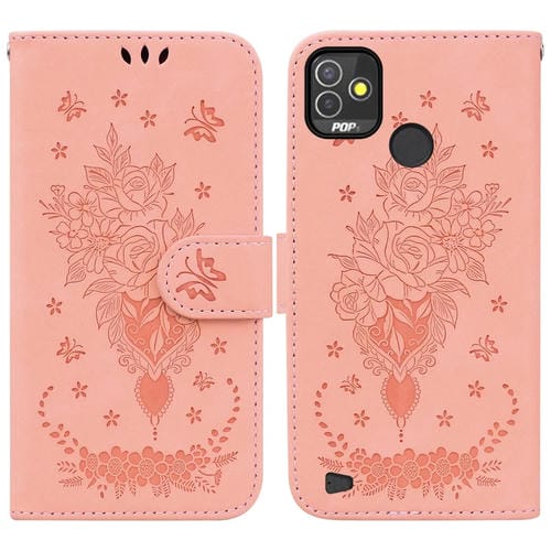 Funda para Tecno Pop 5P Butterfly Rose Foothip en Relieve de Cuero (Rosa)
