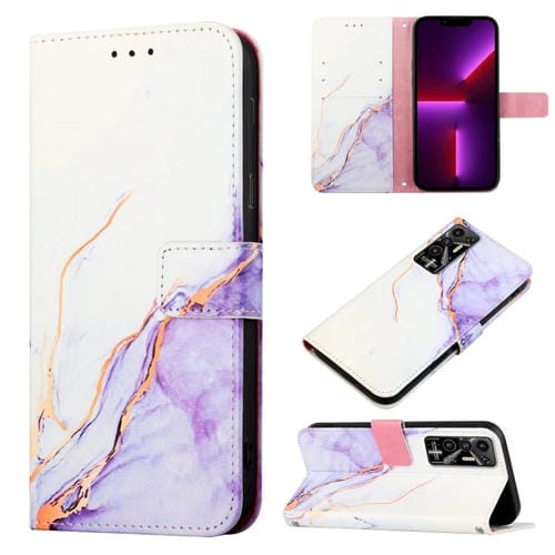 Funda de Cuero para Tecno Pova 2 Pt003 con Patrón de Mármol (Blanco Purple)