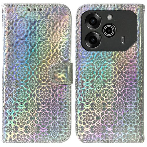 Funda de Cuero para Tecno Pova 6 5G y 6 Pro 5G con Hebilla Magnética (Plata)