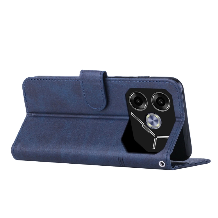 Funda para Teléfono Tecno Pova 6 Cuero con Hebilla y Textura de Becerro (Azul)