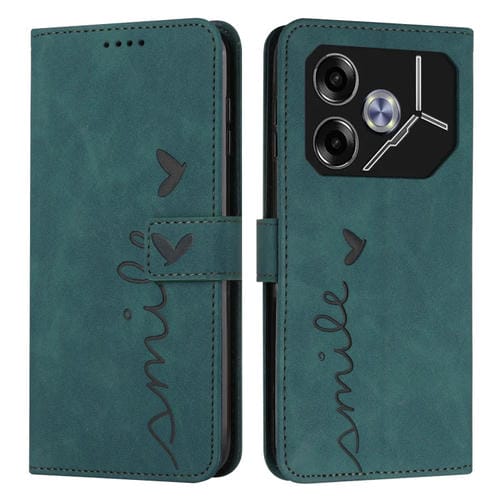 Funda para Tecno Pova 6 Skin Feel Heart de Cuero En Relieve con Cordón Largo (Verde)