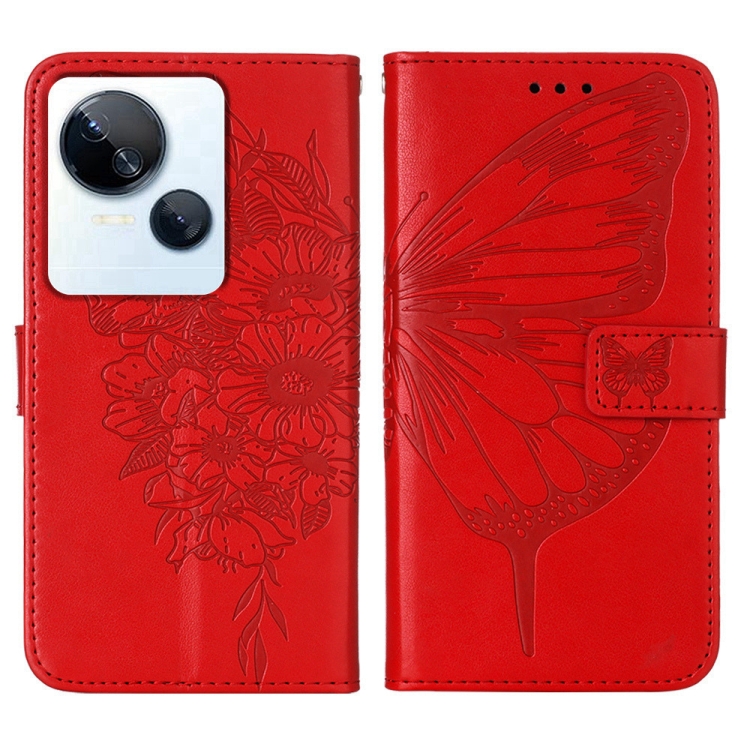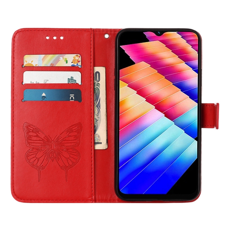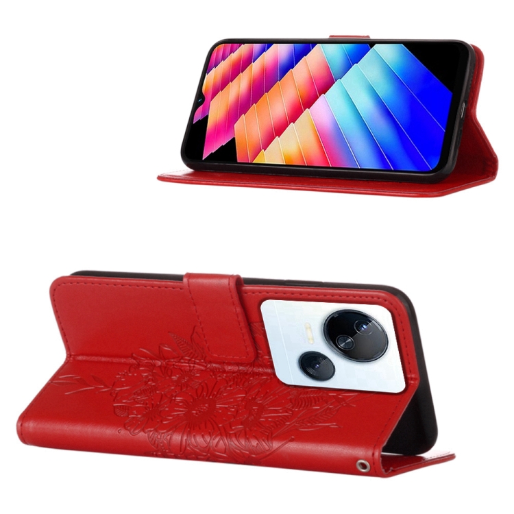 Estuche para Tecno Spark 10 5G / K18 de Cuero con Mariposa en Relieve (Rojo)
