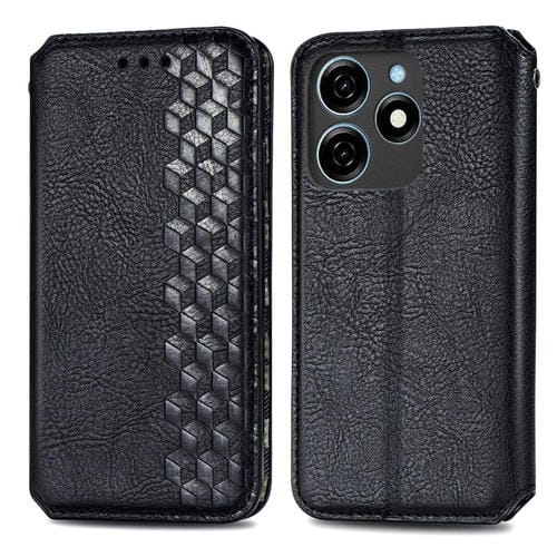Funda para Tecno Spark 20 4G Cubic Grid Cuero Magnético Prensado (Negro)