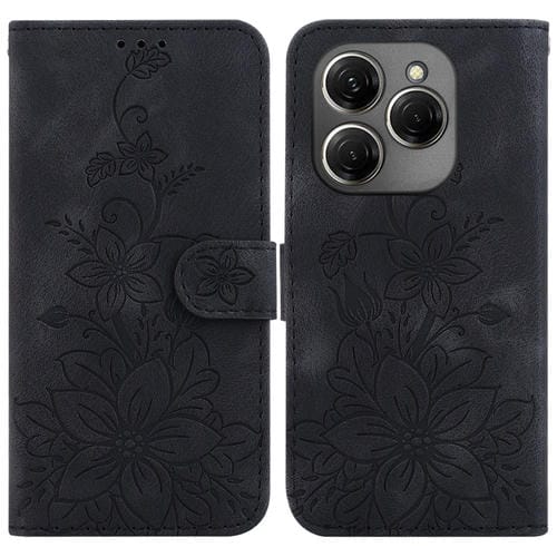 Funda de Cuero En Relieve para Tecno Spark 20 Lily para Teléfono (Negro)