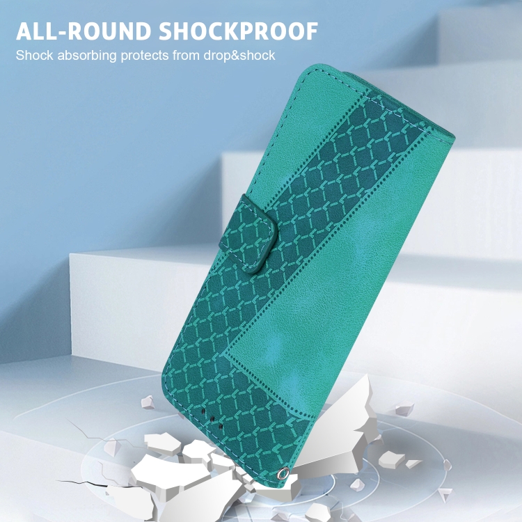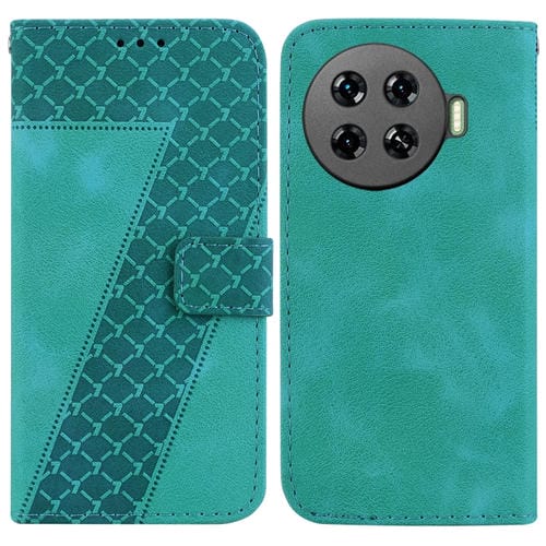 Funda de Cuero para Tecno Spark 20 Pro + 4G con Relieve Forma de 7 (Verde)