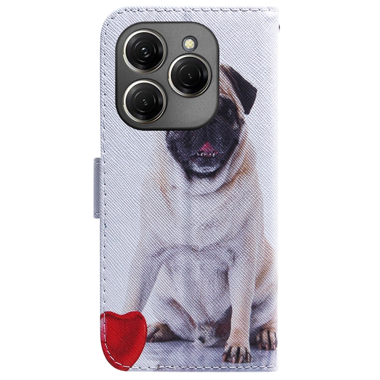 Funda de Cuero con Tapa para Tecno Spark 20 Pro con Dibujo Coloreado (Pug)
