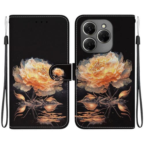 Funda de Cuero para Tecno Spark 20 Pro con Dibujo Coloreado y Textura de Cristal (Peonía Dorada)
