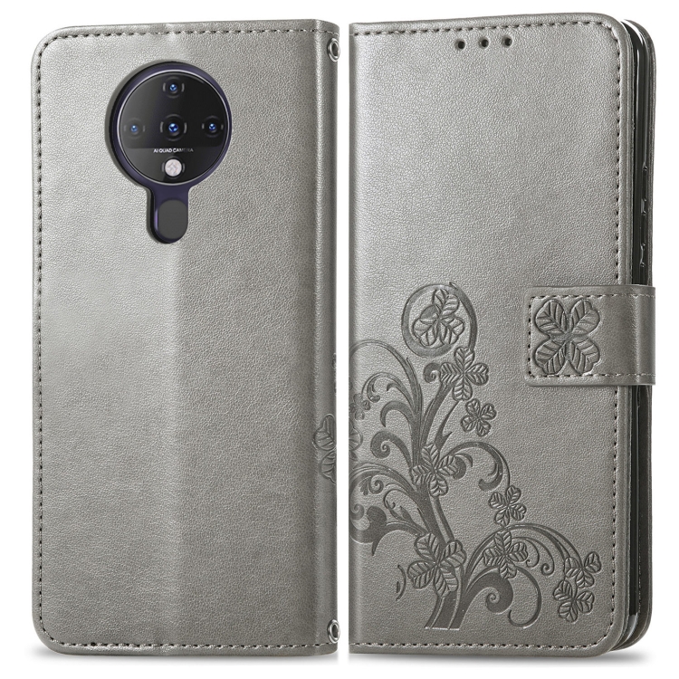 Funda de Cuero para Tecno Spark 6 con Hebilla Four-Hoof, Ranura para Tarjeta y Soporte (Gris)