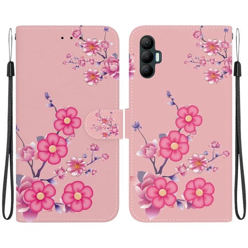 Funda de Cuero para Tecno Spark 8 Pro con Dibujo Coloreado y Textura de Cristal (Flores de Cerezo)