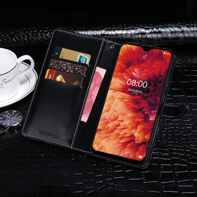 Funda de Cuero para Ulefone Note 8P Idewei con Tapa Horizontal, Soporte, Ranuras para Tarjetas y Billetera (Negro)