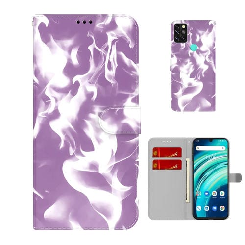 Funda de Cuero para Umidigi A9 Pro Cloud Fog Stattern con Soporte y Ranura para Tarjeta y Billetera (Púrpura)