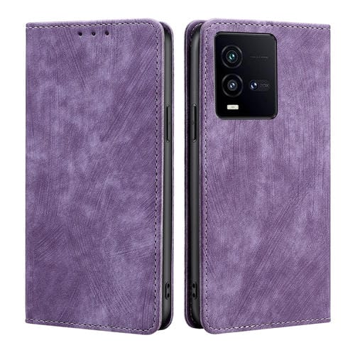 Para Vivo Iqoo 10 Rfid Funda de Teléfono de Cuero Magnético con Cepillo Antirrobo (Púrpura)