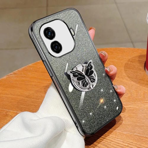 Para Vivo Iqoo Neo Z9 Funda para Teléfono de TPU con Soporte de Mariposa con Brillo Degradado Plateado (Negro)