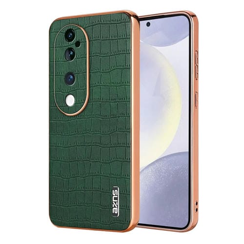 Para Vivo S19 Pro Azns Estuche para Teléfono de Cobertura Total con Textura de Cocodrilo y Marco Galvanizado (Verde)